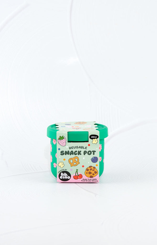 OUR REUSABLE SILICONE SNACK POTS ARE MADE FOR LITTLE HANDS WITH BIG SNACK CRAVINGS. UNBREAKABLE, FLEXIBLE AND LEAK RESISTANT, OUR SILICONE SNACK POTS ARE BUILT FOR LUNCHBOXES, NAPPY BAGS, AND SNACKS ON THE GO. GREAT FOR YOGHURT, DIPS, FRUIT, DRY SNACKS AND ANYTHING IN BETWEEN!