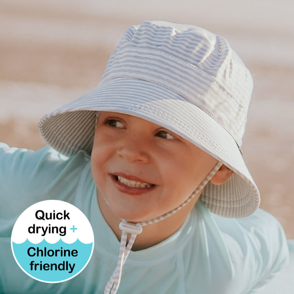 The Bedhead Swim Bucket Hat is a UPF50+ kids sun hat with our unique 'anti-flop' brim that won't flop in front of children's eyes (even when wet!)