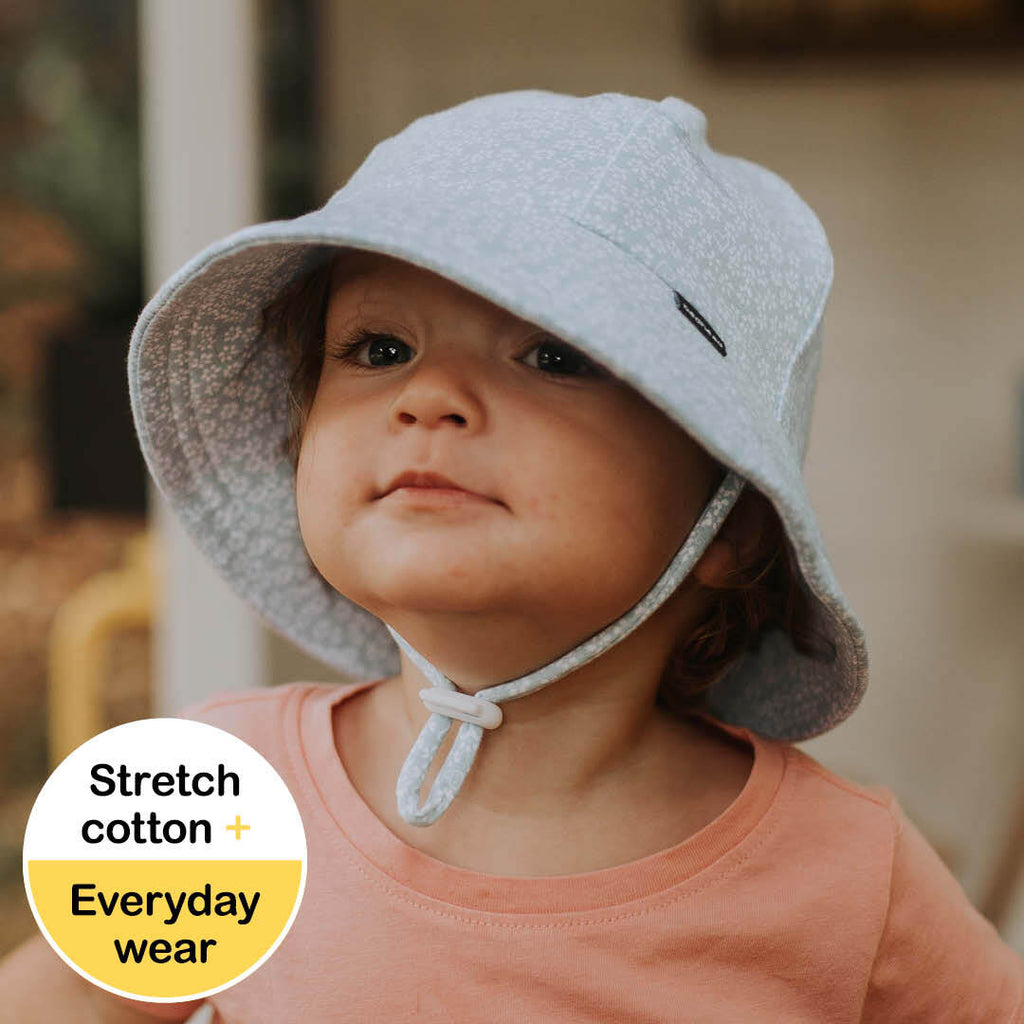 The Bedhead Toddler Bucket hat is a fabulous baby sun hat featuring a soft flexible brim and rated is UPF50+ Excellent Protection!