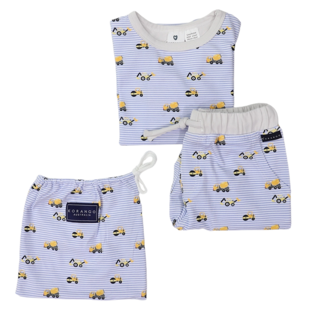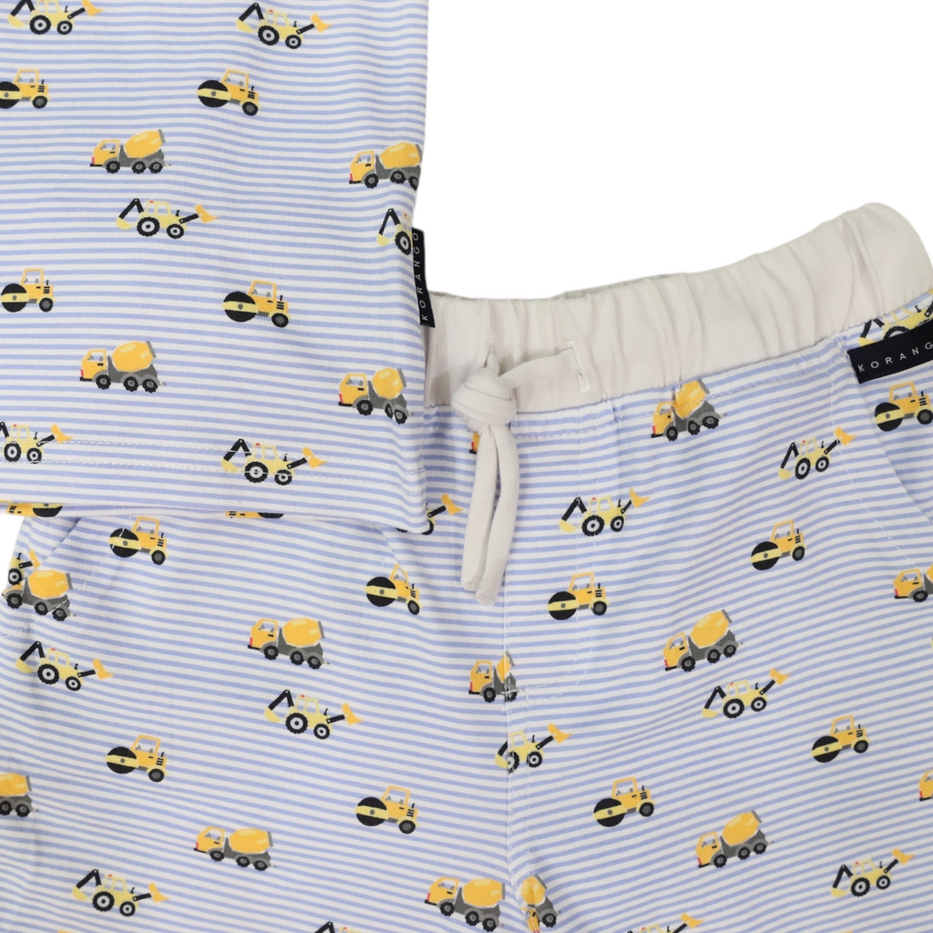 Cotton PJs Trucks and Diggers Print Blue SS24