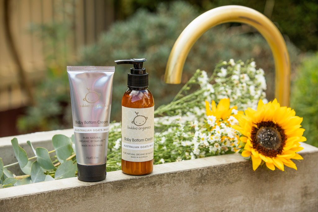 Extra-sensitive skin needs extra special care and our Australian Goats Milk Baby Bottom Cream works overtime to love on your bubba’s precious skin. Pure shea butter, calendula, Aloe vera & olive fruit oil combine soothing forces with 100% fresh Australian goats milk (no powders here!) to calm, soothe & safely nourish while naturally protecting baby’s sensitive bottom area. This creamy but never greasy formulation has been created to keep little bottoms protected, it’s not a medicated cream for the purpose of helping nappy rash but rather a nourishing cream to assist in preventing it.