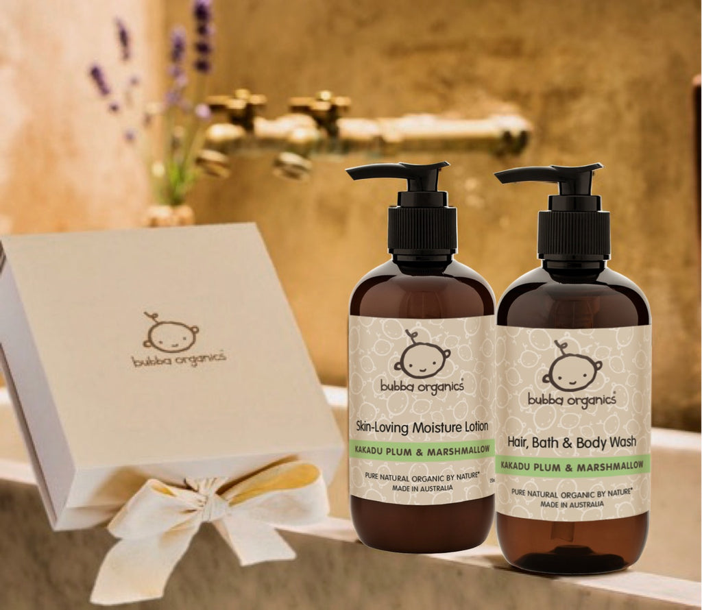 The perfect gift for newborns – and new mums, too! – our Kakadu Plum & Marshmallow Bath & Body Gift Box is practical luxury all wrapped up in a bow! With a nourishing Hair, Bath & Body Wash and naturally hydrating Moisture Lotion, it’s the ideal baby skincare gift set to welcome a precious new bundle to the world.