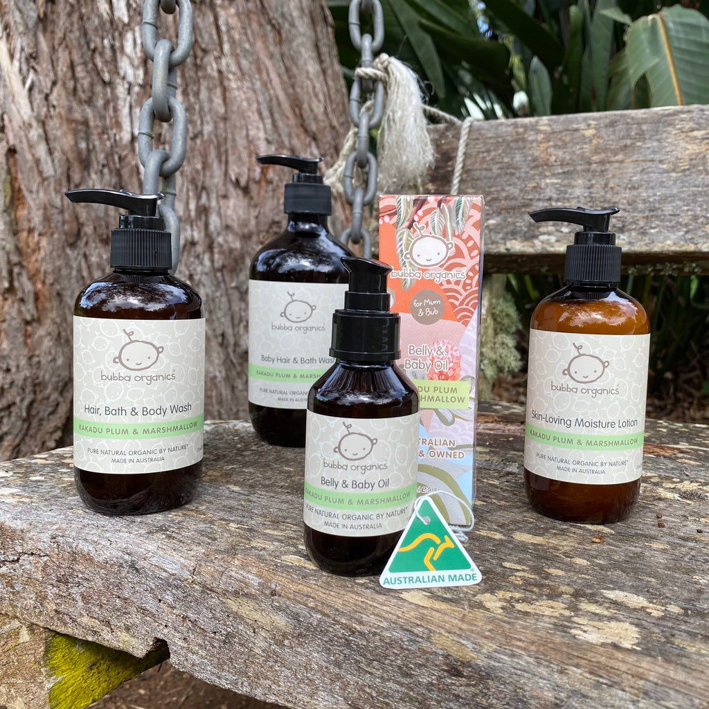 OUR KAKADU PLUM & MARSHMALLOW BELLY & BABY MASSAGE OIL IS: