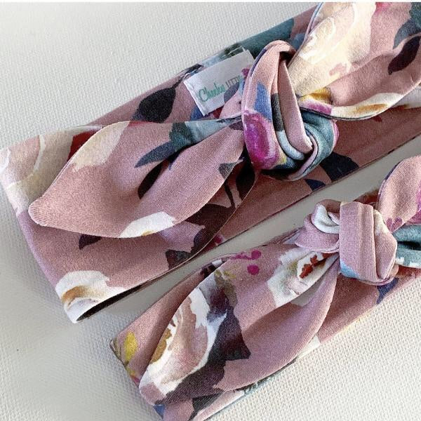 DUSTY ROSE FLORAL TOP KNOT HEADBAND