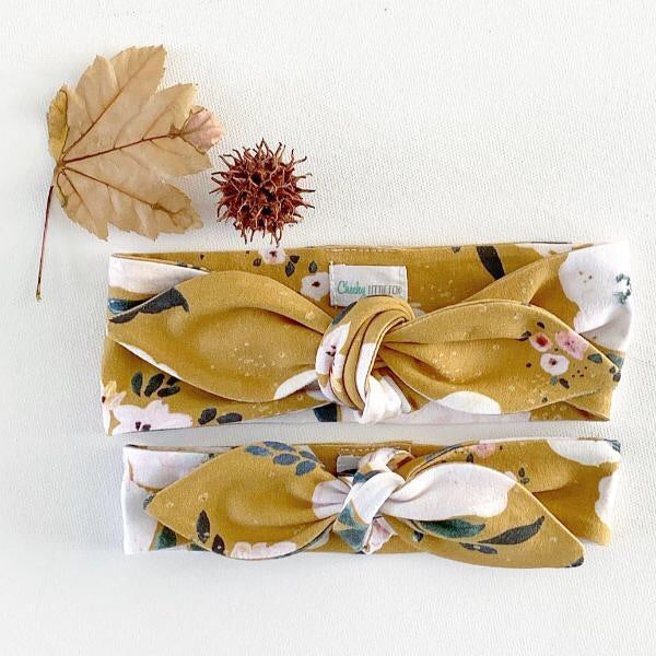 MUSTARD FLORAL TOP KNOT HEADBAND