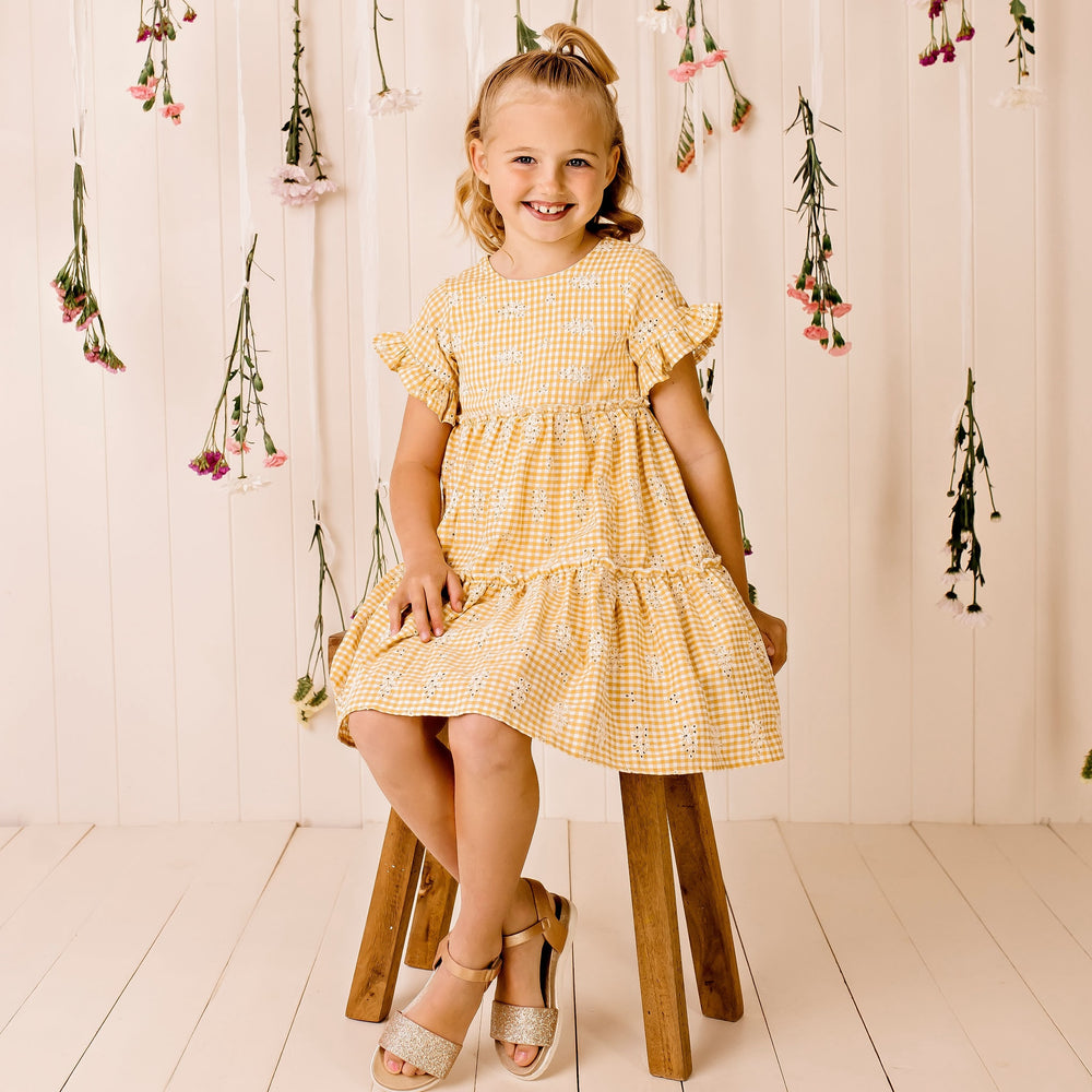 ALICE EMBROIDERED GINGHAM DRESS - YELLOW SS24