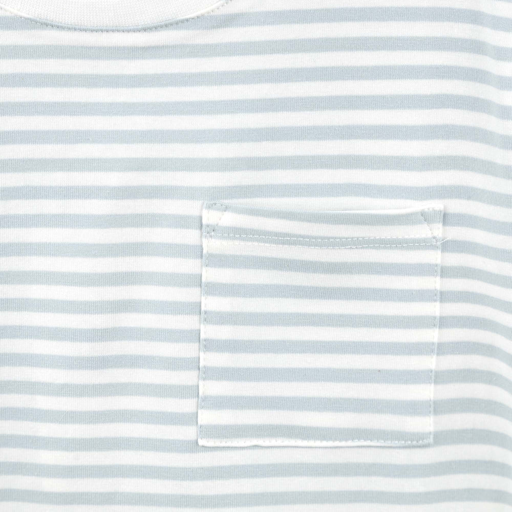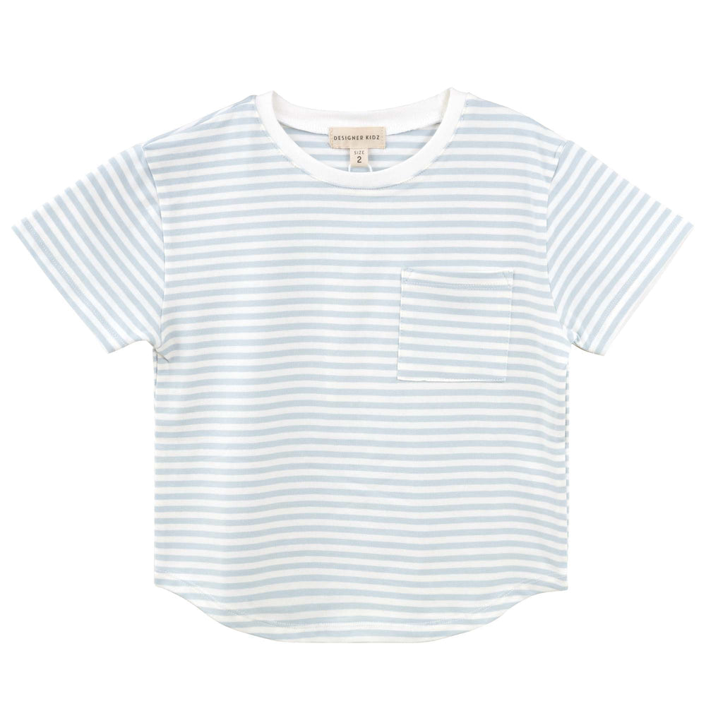 The Harvey S/S Stripe T-Shirt in Cocoa featuresfront pocket detail, contrast ribbing at the neck, short sleeves and rounded hem.