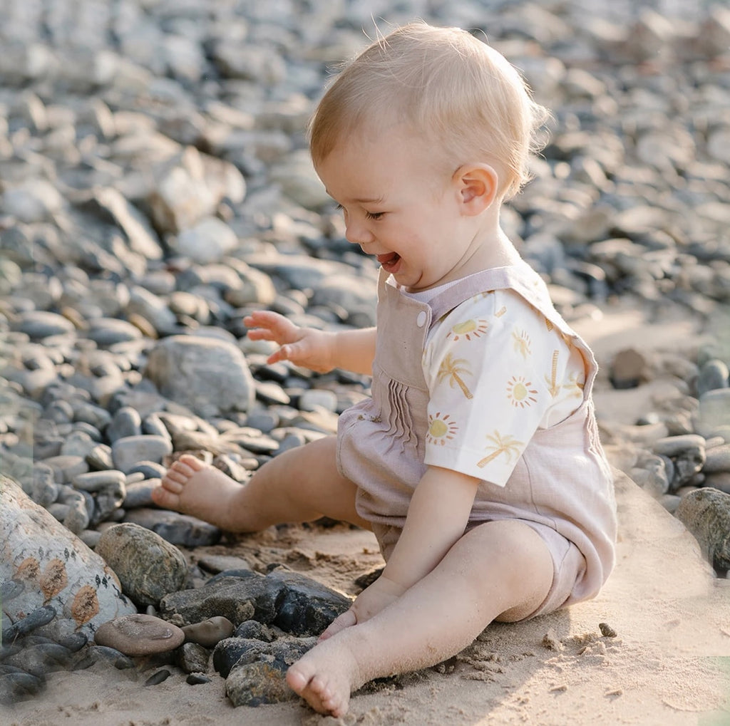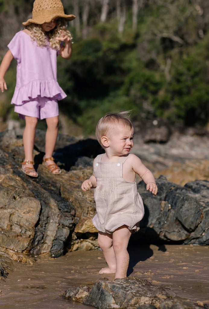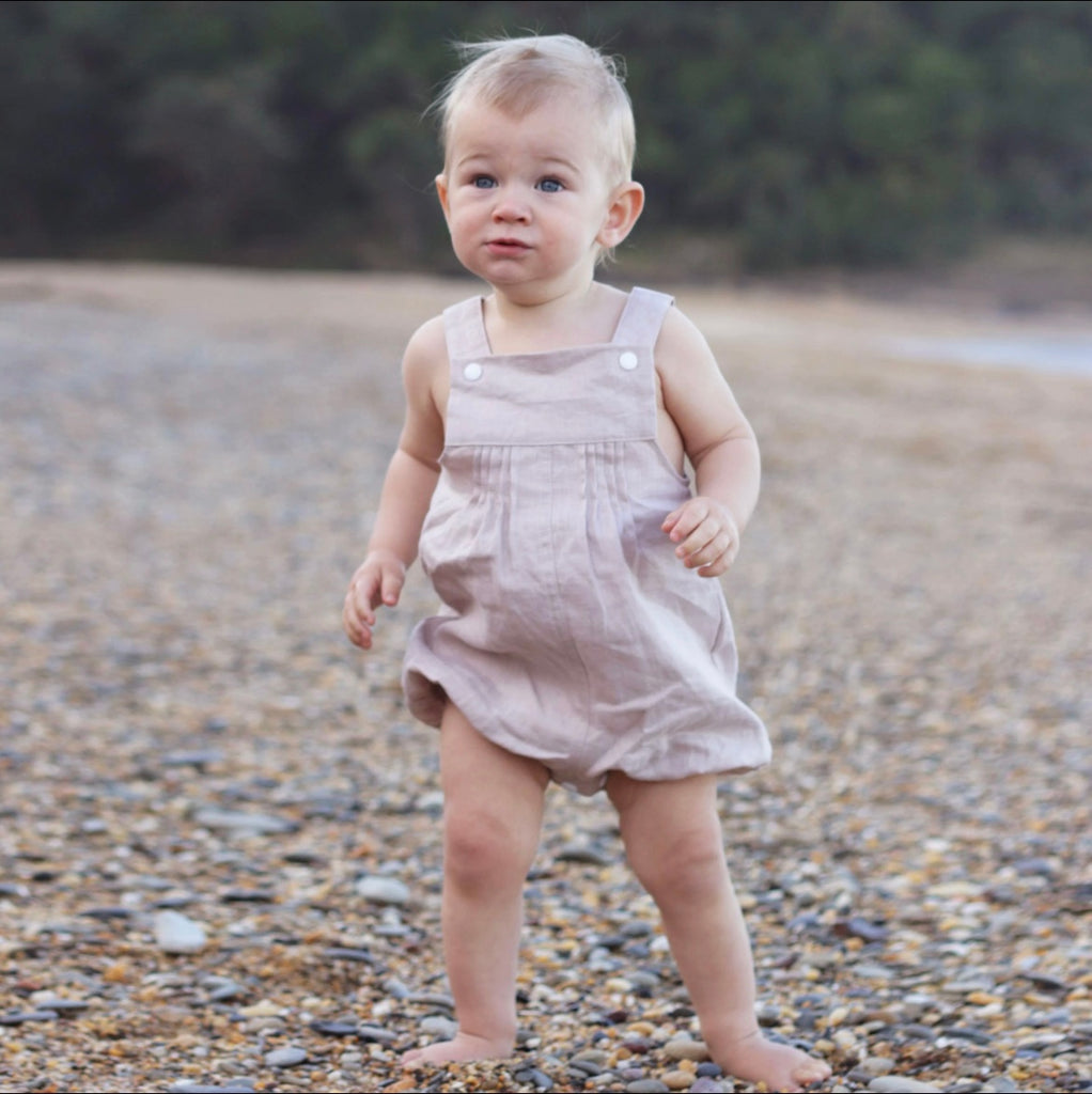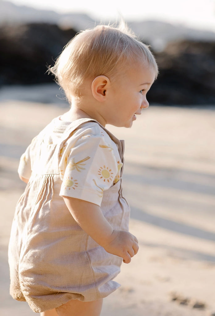 The 'Chai' Overalls are the perfect mix of practical and fun! They have an elastic hem creating a bubbled bloomer look, a super convenient inner leg snap panel (for those countless nappy changes and toilet training days) and classic pleated detailing.