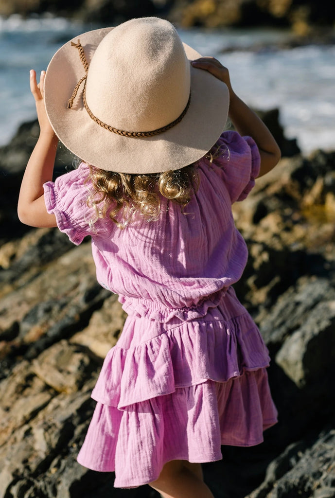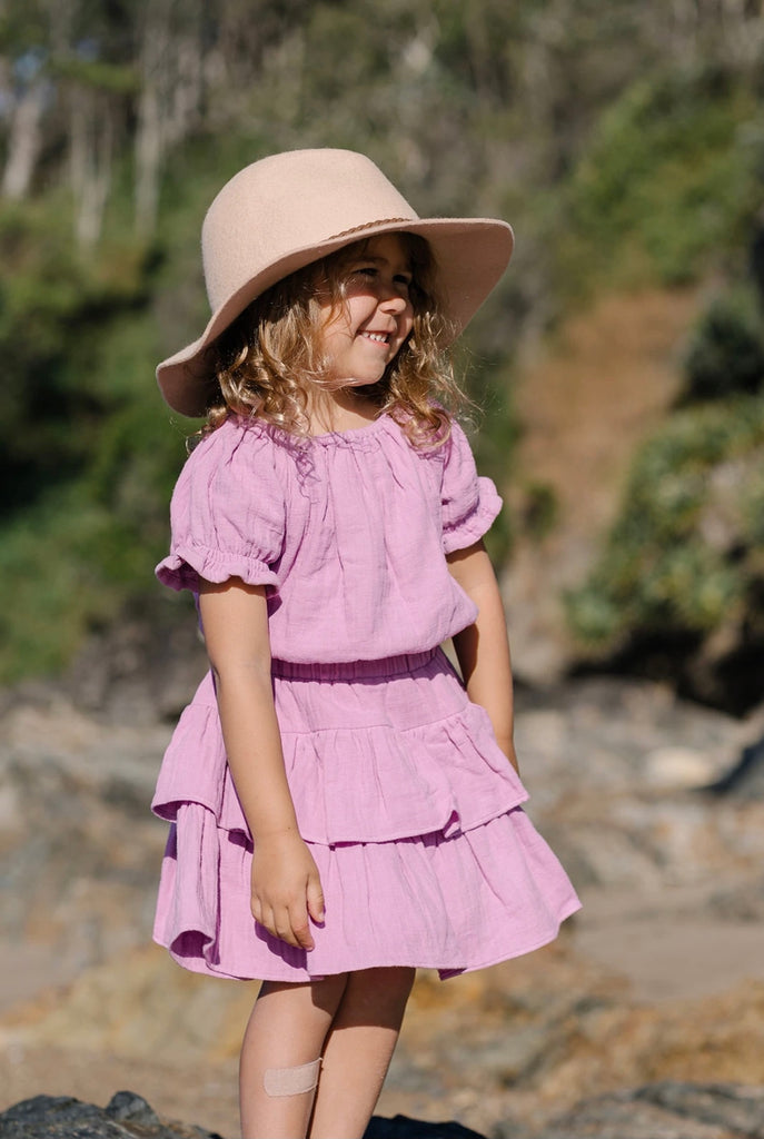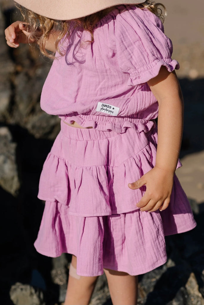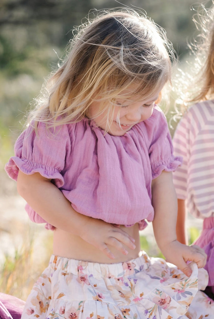 The 'Mullberry' Cropped Top is adorable! It sits above the belly button and has shirred sleeves and hem. It looks so cute with its matching skirt too.