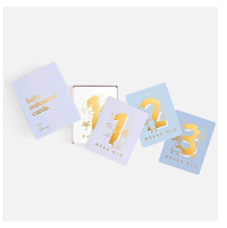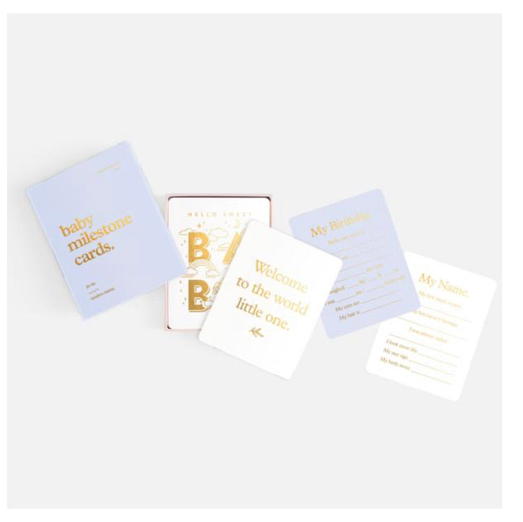 Includes 34 cards with rounded corners safe for little hands, a special card for your birth announcement, plus all the important milestones from one day old to one year old. All in gender neutral colours with gold foil on every card. Cards: 108 x 140mm / 4.25 x 5.5", Box:...