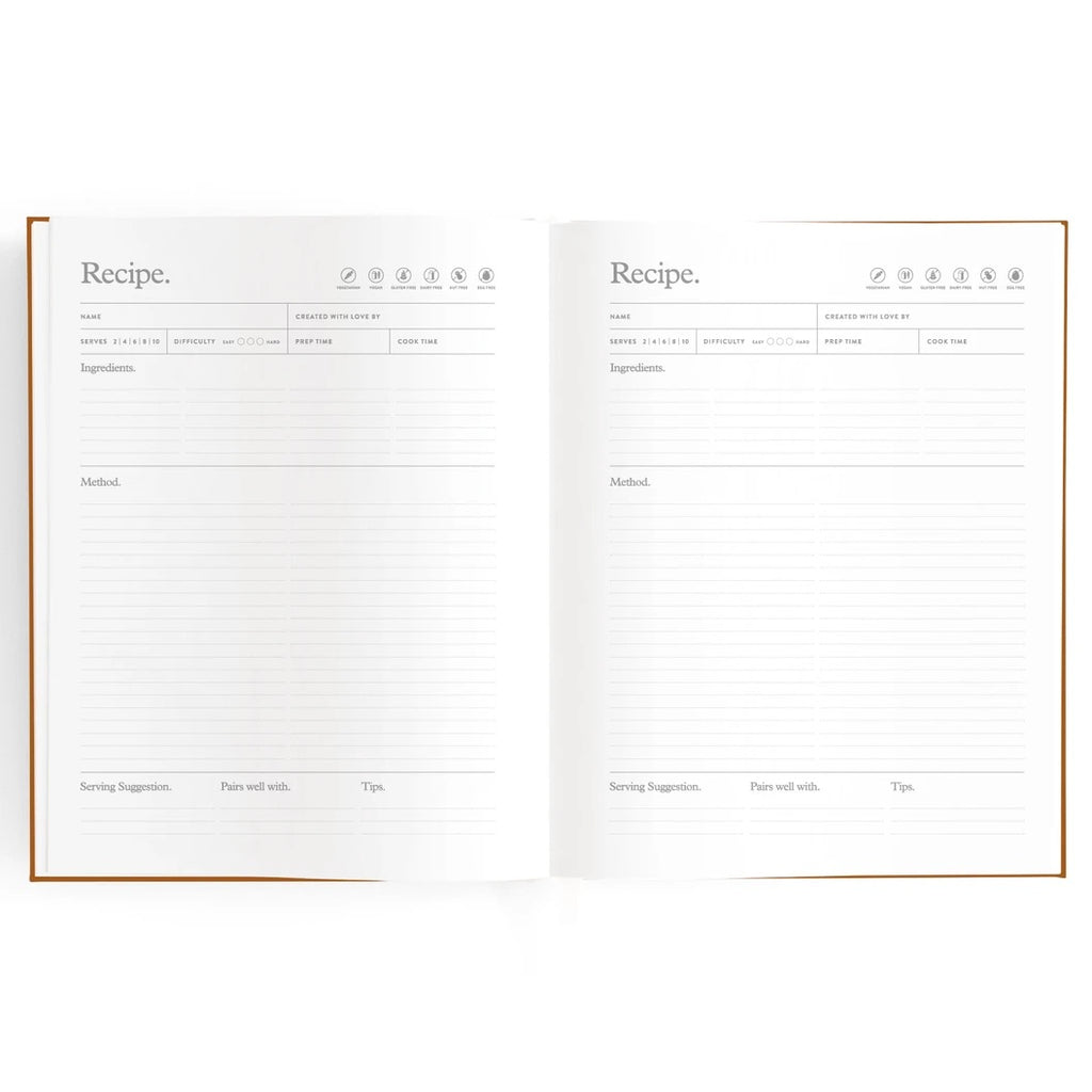 For all your family recipes. Handy cooking guide charts for temperatures, volumes, weights and cup measures. Space for dietary requirements, serving size, difficulty as well as serving and pairing suggestions.