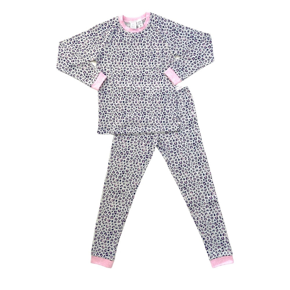 Your teen will love this super soft 100% cotton PJ set. Featuring our Grey Marle fabric with a fun Leopard print detail. Contrast Pink Marle & White striped cuffs for the added details. Perfect for a good nights sleep and lounging around on a Winters day.