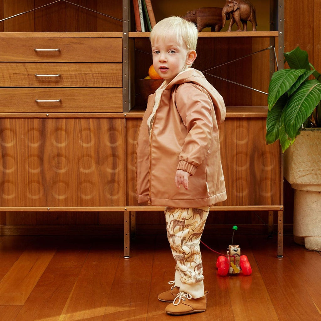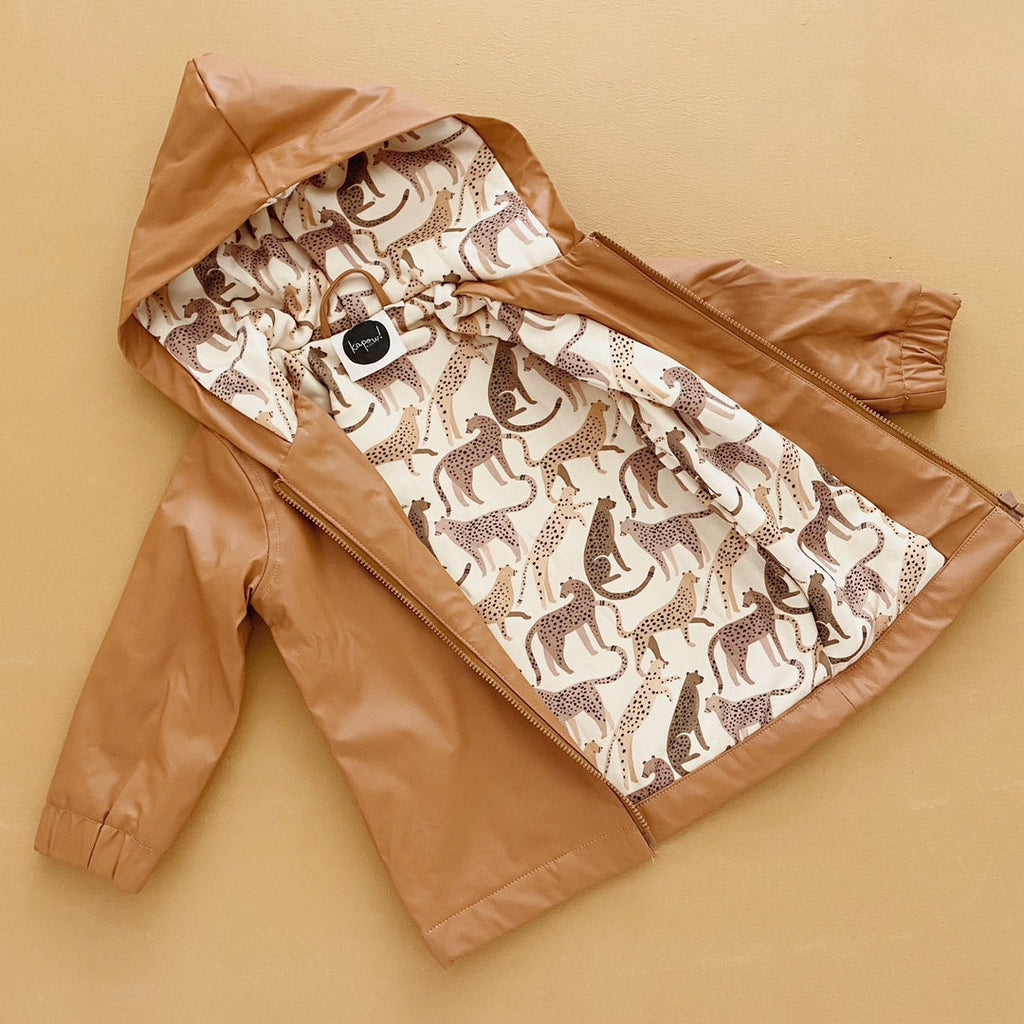 Keep yourself deliciously dry with our Caramel Raincoat. Zip it up and stay cozy with the Rajah print fleece lining. This hooded raincoat will keep you stylishly snug come rain or shine.