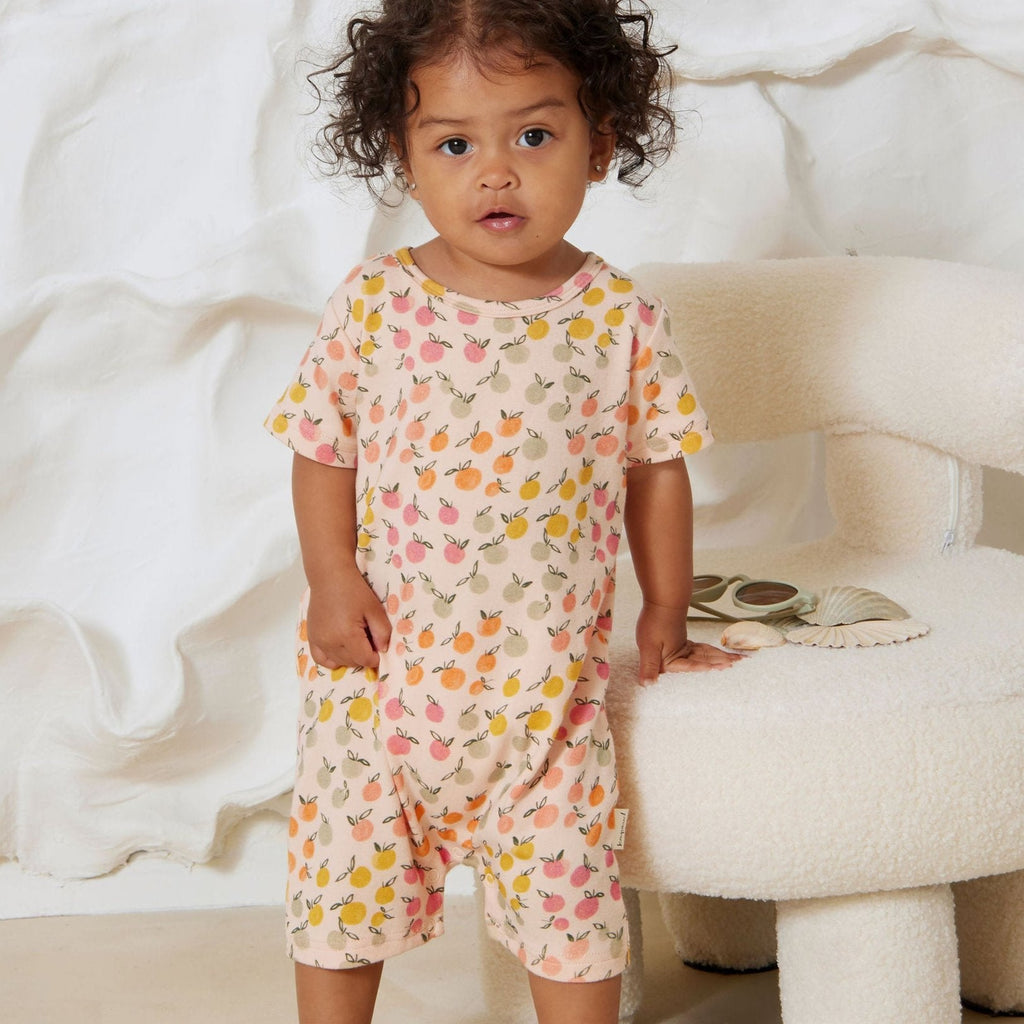 Get playful and stay comfy in our Citrus Shortall. Made with soft stretchy cotton and a cute water colour citrus print, this shortall is perfect for a fun day out.