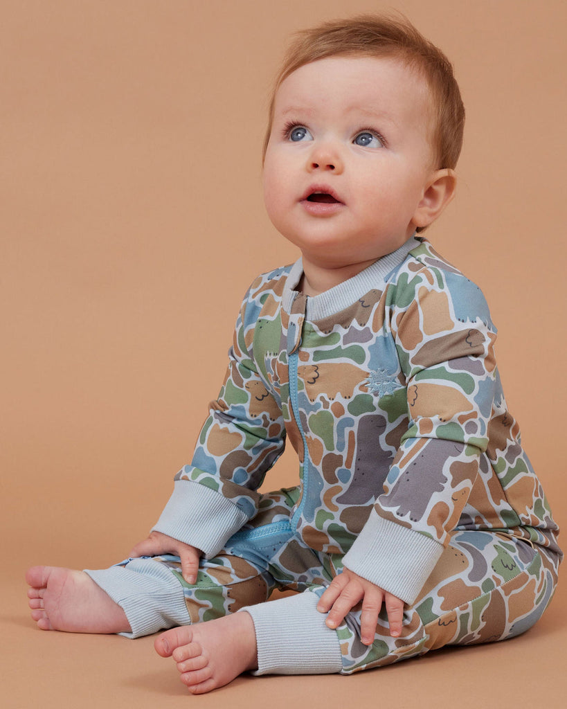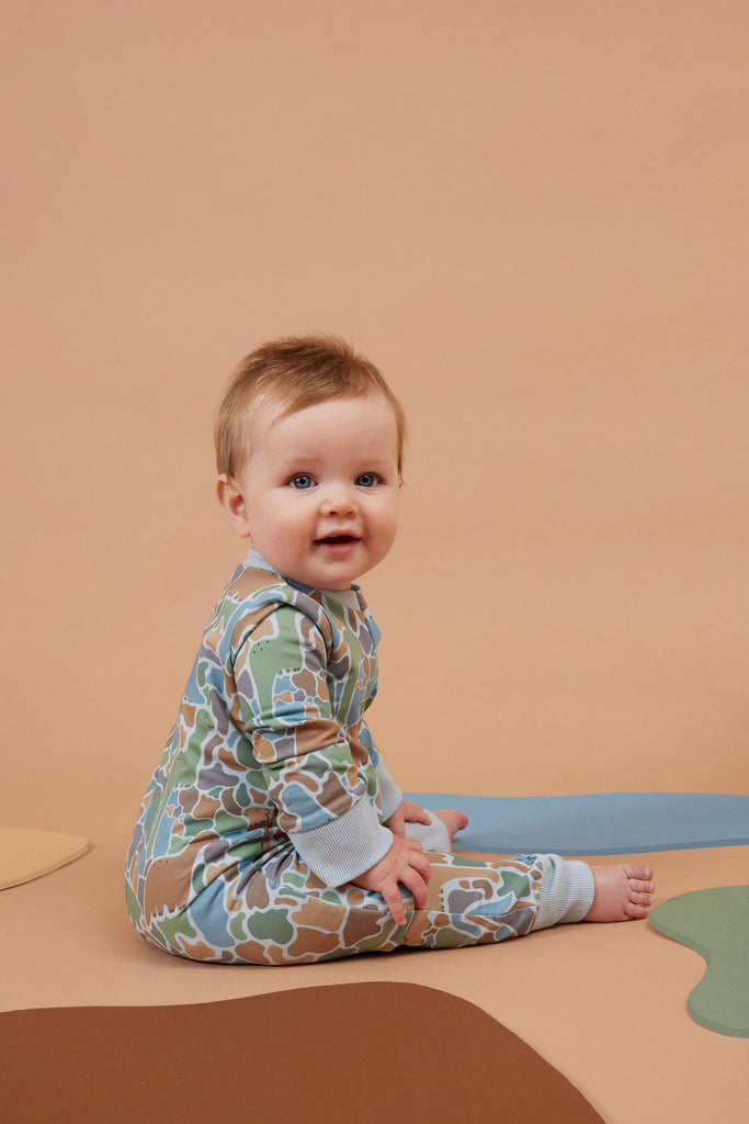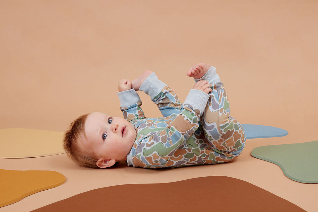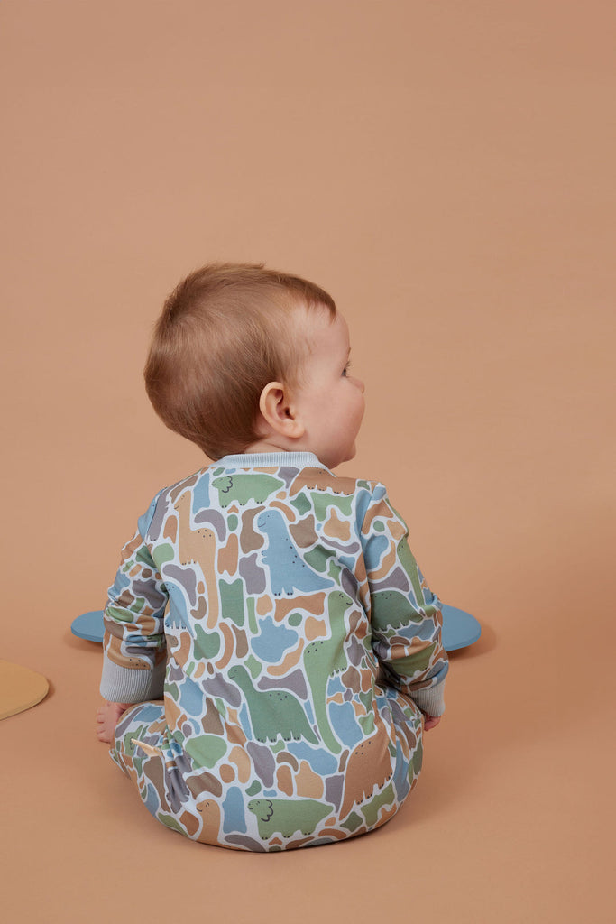 Explore one piece comfort and style with the Rawr-some Dino-saw Zip All in one. Unzip a world of adventure and coziness with this unique all-in-one outfit. Featuring a 2-way zip for easy nappy changing, this onesie is perfect for lazy days and nap time. Made from soft 95% cotton and 5% spandex french terry. Designed in Melbourne, Australia, made ethically and slowly in China.