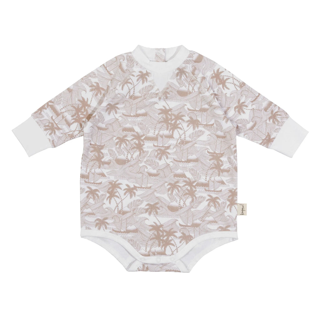 Made from soft cotton jersey. With snap closures for easy nappy changes. Snaps at back neck. Slightly oversized fit. Contrast plain rib accents.