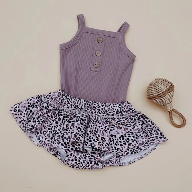 A dusty lilac purple basic stretchy cotton rib that can be worn on its own or as a perfect colour match to our Leopardess range.
