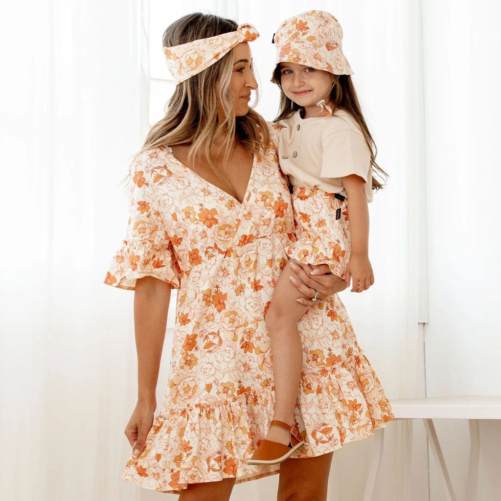 This dress is perfect for Spring / Summer - wear to the beach, or a picnic or out for dinner with friends. Match your mini with the matching kids Petal range. It features cute and flattering wrap style v-neck front, elastic waist under bust and ruffled edges Unlined.