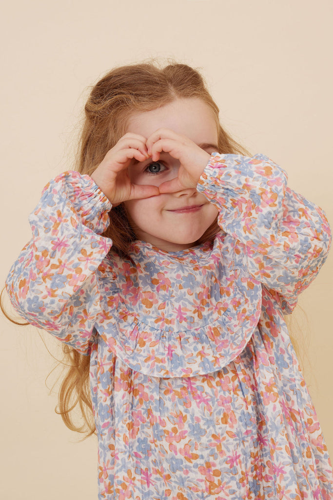 Get ready to shine in the Primrose Puff Sleeve Dress! With its playful puff sleeves, ruffles and watercolour floral design, you'll stand out in any crowd. Made from high-quality material, this dress is not only stylish but also comfortable. Perfect for any occasion, you'll love twirling in this fun and flirty dress! Made from 100% cotton cheesecloth. Designed in Melbourne, Australia, made ethically and slowly in China.