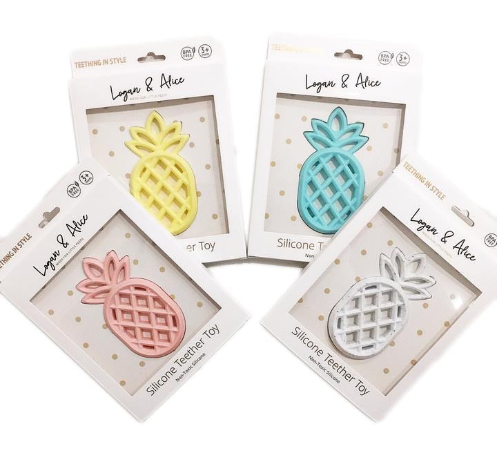 NEW Colours - The Original Pineapple Teether by Logan & Alice have been designed to be easy for babies to hold, have raised bumps on the back and assists in promoting fine motor skills. All are Teether Toys are packaged in our beautiful boxes making them the perfect gift.