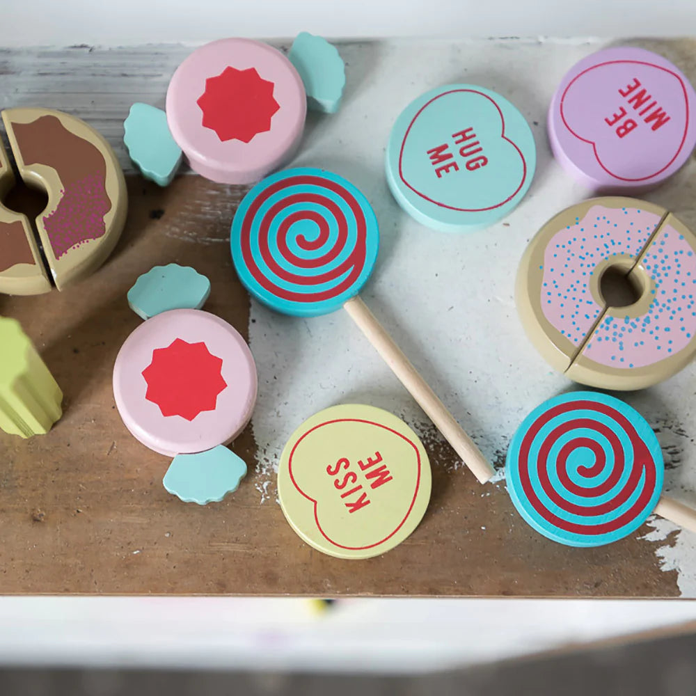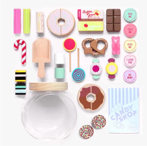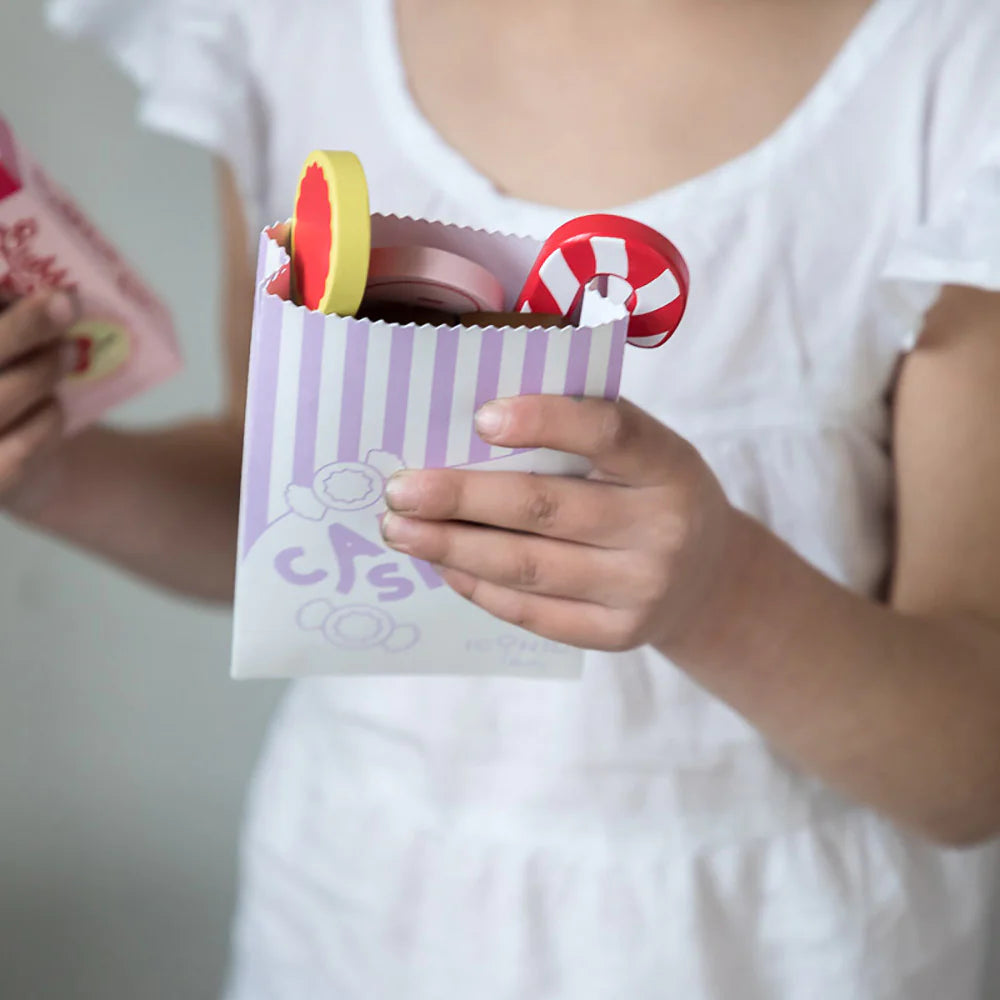 Create all the pretend sweet treats you can imagine with our iconic Candy Jar set! Complete with all the lollies you can remember and a wooden scoop with paper bags, so you can hoard your lollipops, donuts, candy-canes in the Candy Jar and serve them to your friends. Let your children open their minds to a good old fashioned candy land - without the teeth cavities.