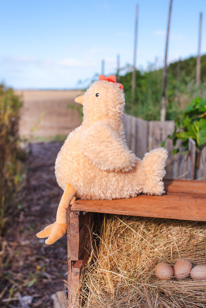 Harriet the Hen takes great pride in supplying the Nana Huchy Farm with fresh, golden eggs each morning. She clucks with satisfaction as her contributions fill the baskets. However, rainy days are her nemesis, wet feathers & soggy earth make her grumpy. On those dreary days, Harriet prefers staying cozy in the coop, dreaming of sunshine & dry ground.