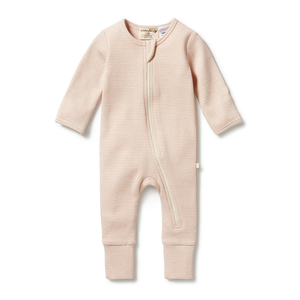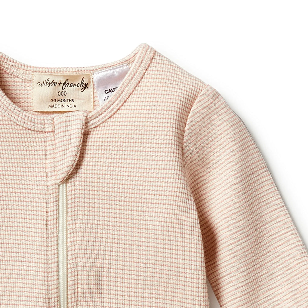 Rose Organic Stripe Rib Zipsuit with feet AW23
