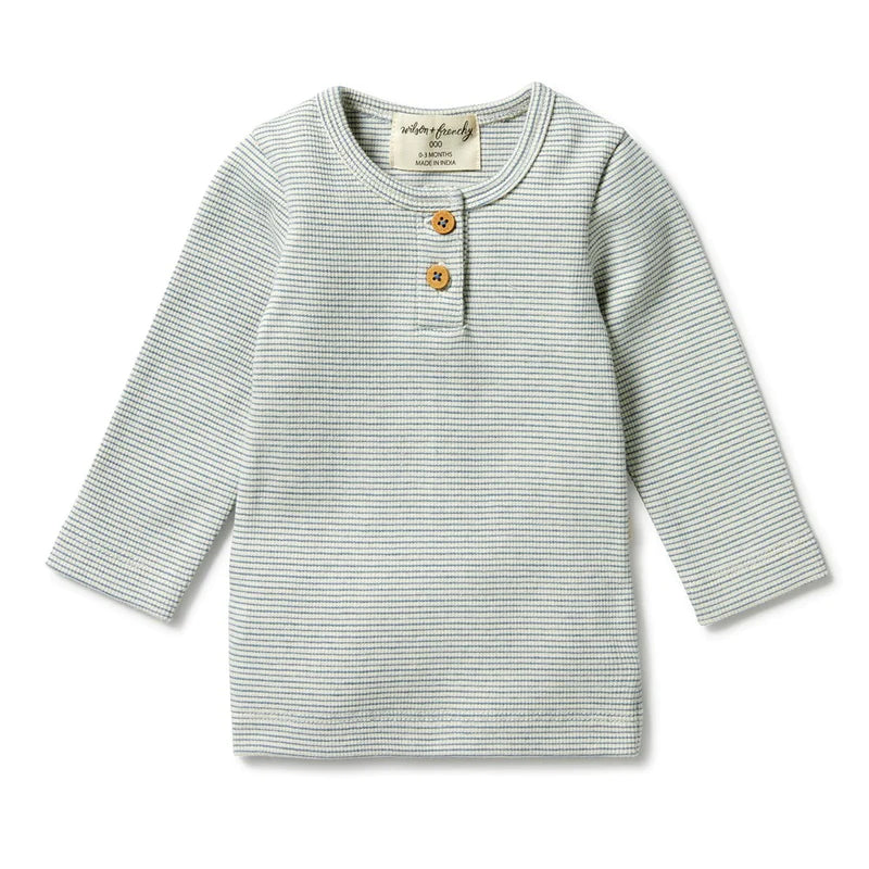 Bluestone Organic Stripe Rib Henley Top AW23