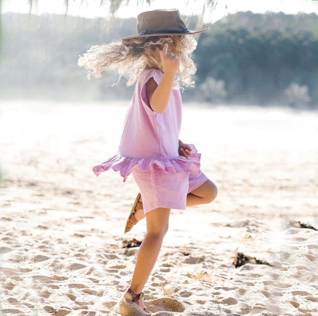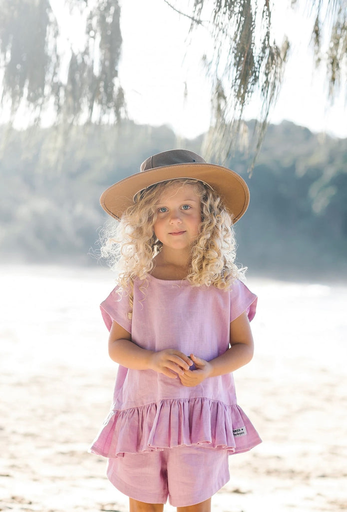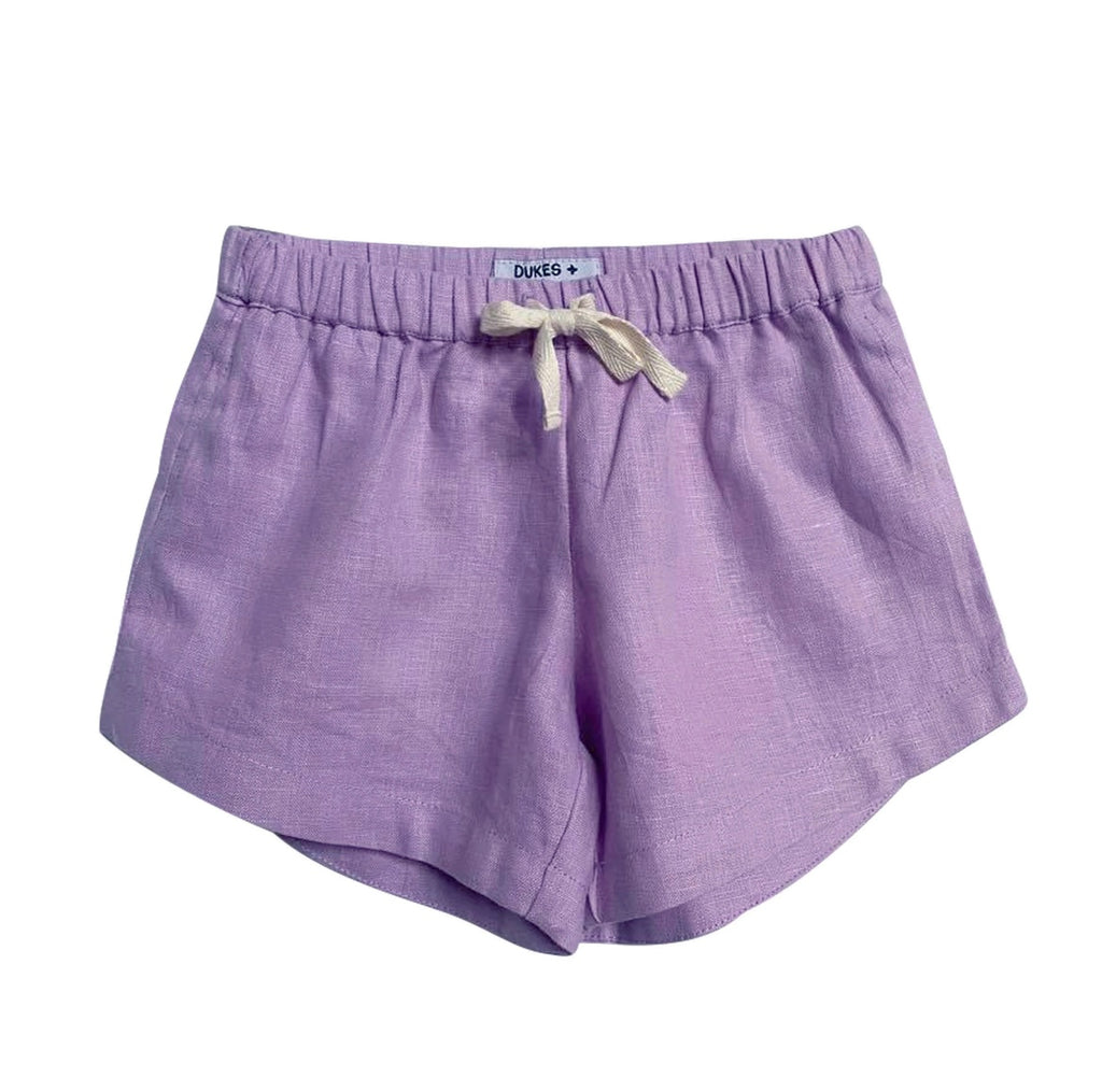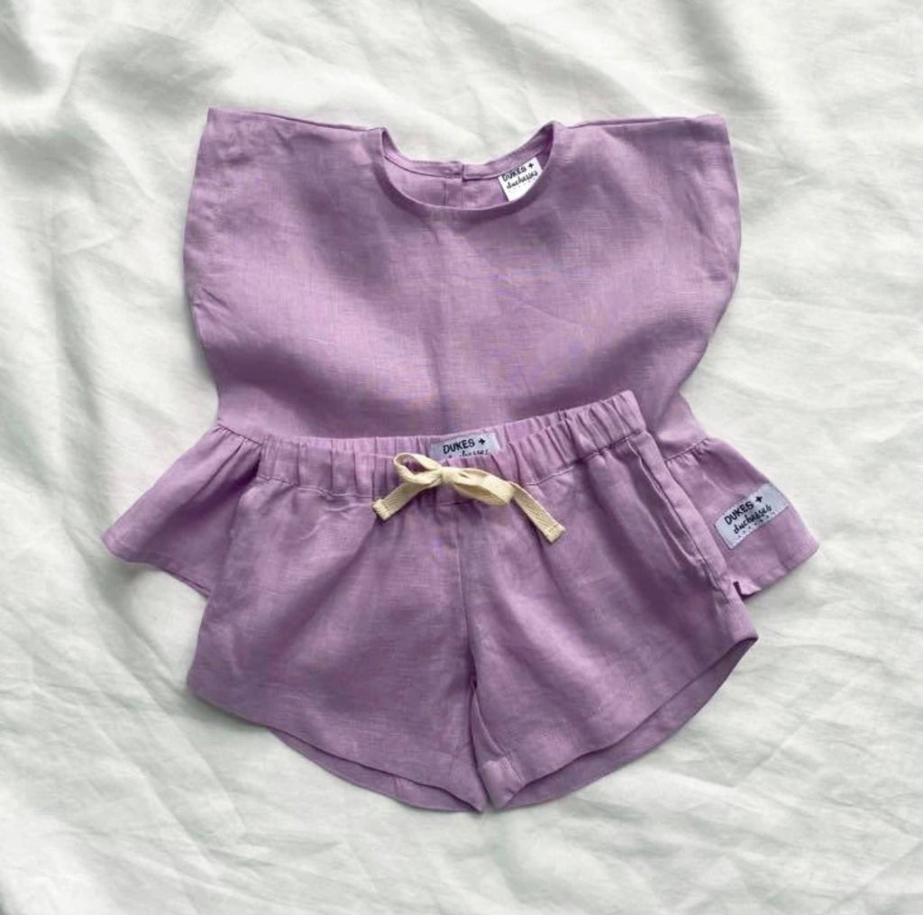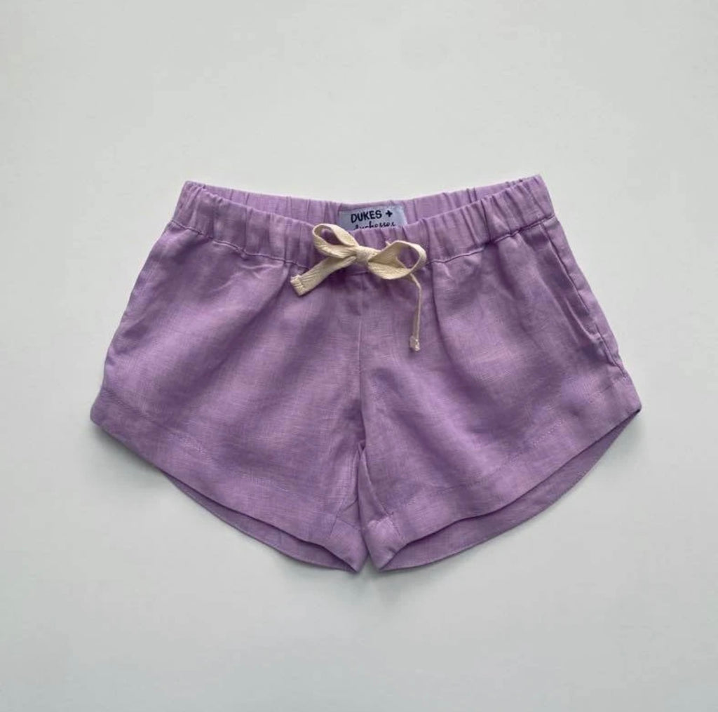 The 'Lilac' Curved Shorts are the sweetest. With a functional drawstring and hip pockets, these shorts are perfect for exploring and collecting little treasures.