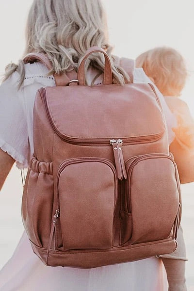 Our best selling Faux Leather Nappy Backpack is now available in a gorgeous Dusty Rose hue. It pairs beautifully with our Botanical Pram Liner and Changing Clutch, picking up on the delicate pink accents.