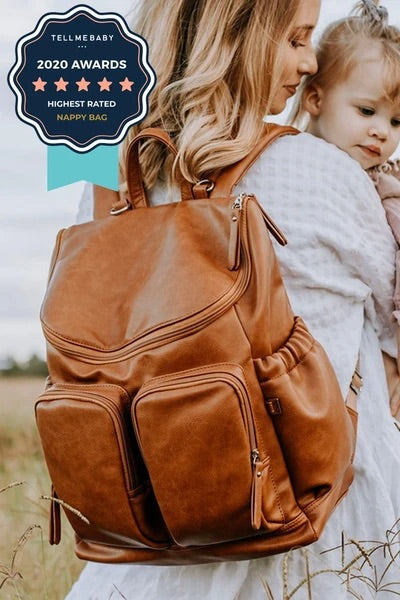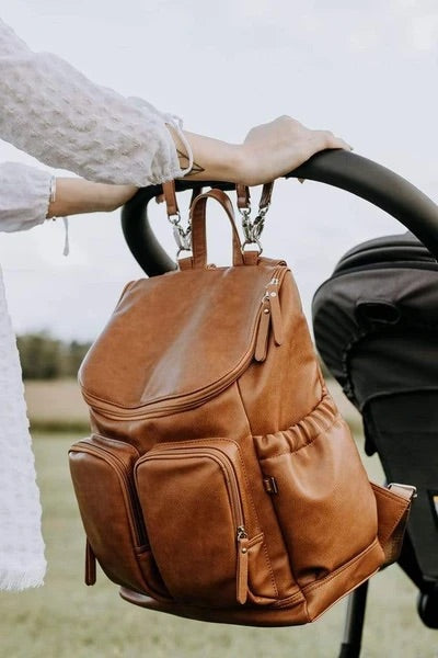 Voted Best Nappy Bag Australia 2020 in the people's choice Tell Me Baby awards, the OiOi Tan Faux Leather Nappy Backpack is a stylish and comfortable way to carry all your baby's needs. Grab the handle of the nappy backpack and sling it on your back with the adjustable padded shoulder straps, or attach it to the pram using the complimentary stroller clips when heading out & about.