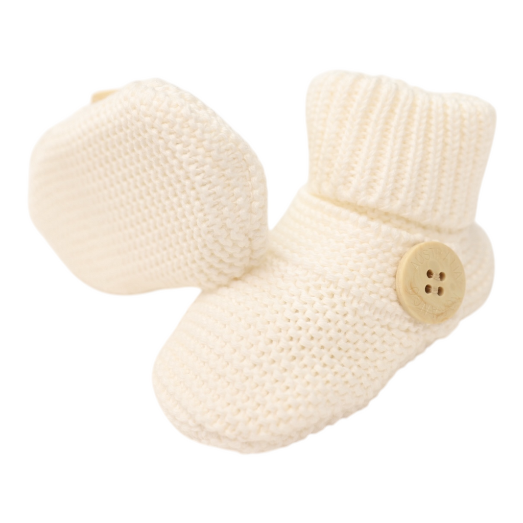 Cotton Knit Button Bootie with gift box white AW25