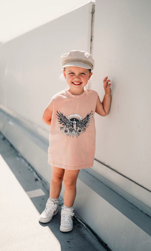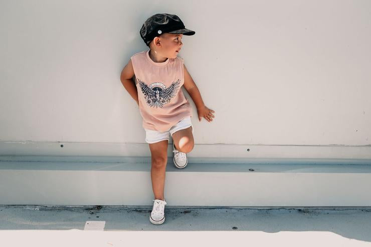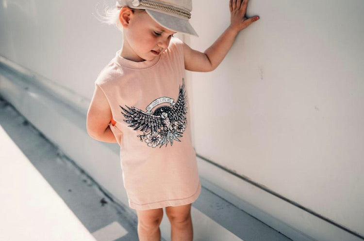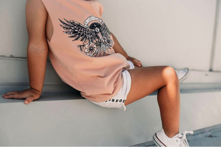 Oversized singlet. Featuring a custom Fred&Brooks graphic, these unisex tees look perfect paired with our Byron Denim Shorts, The OG Shorts, or our new Swim Shorts – you name it. This is a totally unisex Kids Tee that looks great on the little ladies and on the boys.