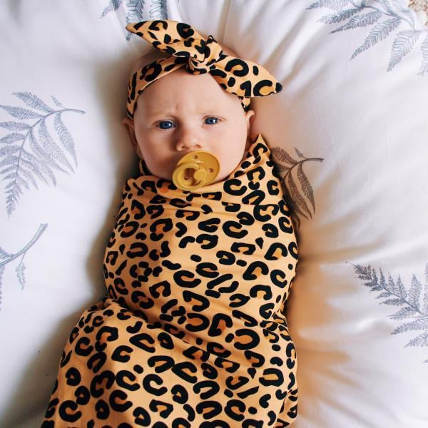 PEACH LEOPARD PRINT TOP KNOT HEADBAND