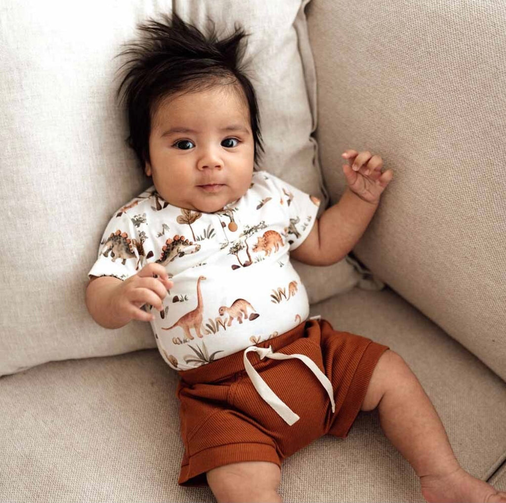 Snuggle Hunny organic Biscuit shorts are made for babies and toddlers. They are practical whilst being very stylish. Soft and stretchy, they are an easy care, fuss-free option that’s simple to coordinate thanks to their relaxed style. They are a perfect match with our organic baby short sleeve bodysuits and they will be a go-to short for bub. Our pants, and all our clothing, is made with Certified Organic Cotton.