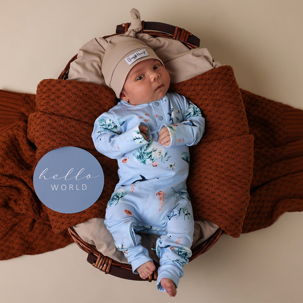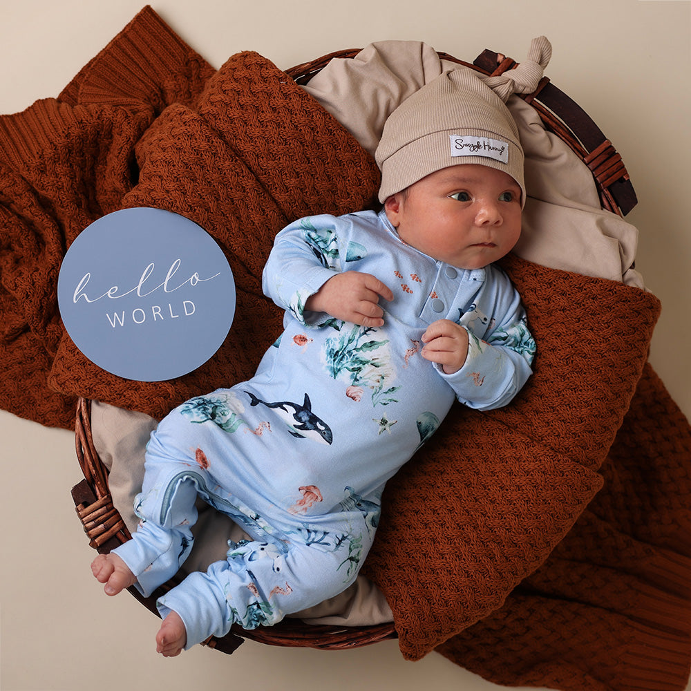 Our Organic Growsuits are an all-in-one onesie that is both functional and beautiful. Soft and stretchy, our growsuits are an easy-care, fuss-free option that’s easy to wear thanks to their modern, fitted style. Suitable for loungewear, daywear, birth announcement photos and make great baby gifts. All Snuggle Hunny clothing is made with GOTS Certified Organic Cotton CU 1182228.