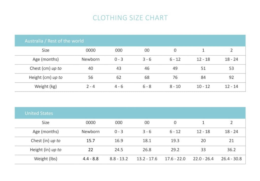 - Sizing: Newborn to Size 2