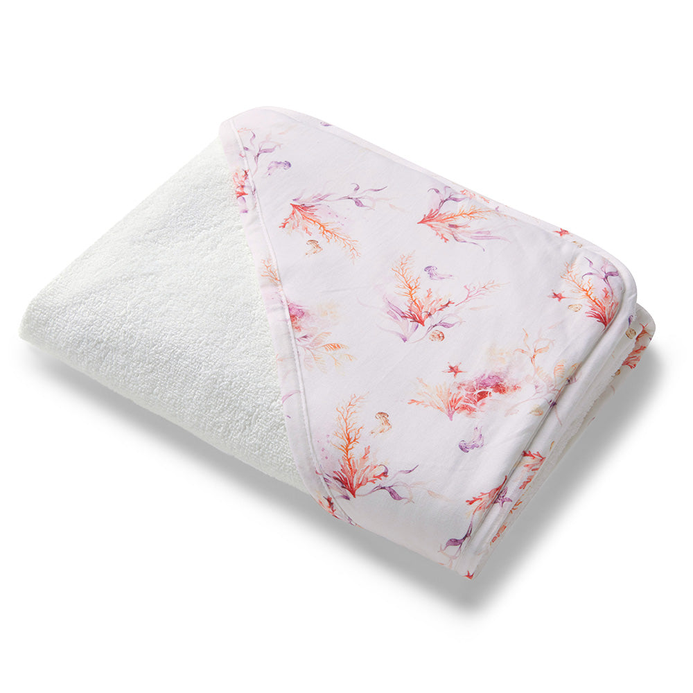 This beautiful extra large organic baby towel in Coral is the perfect size for babies and toddlers and will brighten up any bathroom.