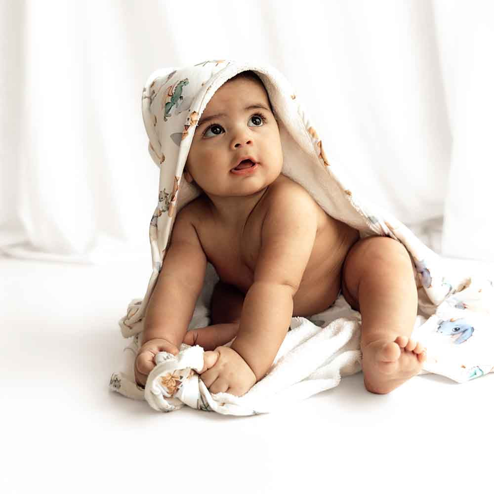 This beautiful extra large organic baby towel in Dragon is the perfect size for babies and toddlers and will brighten up any bathroom.
