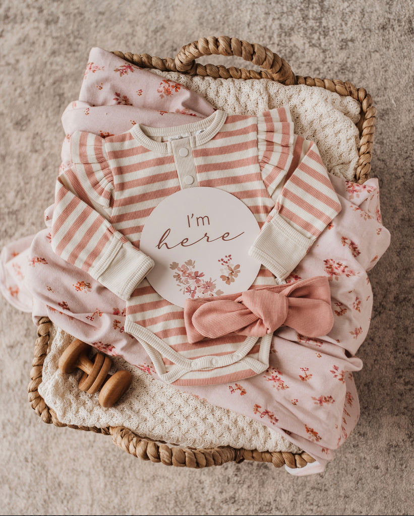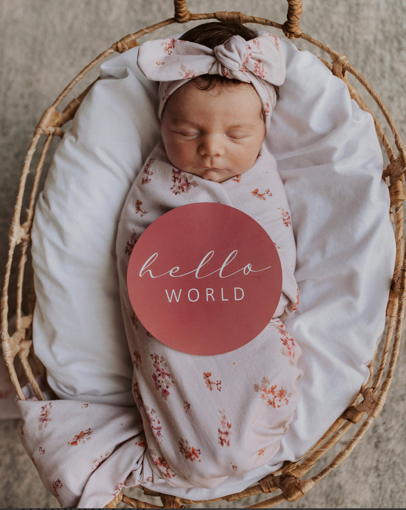 Our Cotton Jersey Wrap is soft and stretchy, it moves and stretches with baby. This wrap comes with a matching topknot.