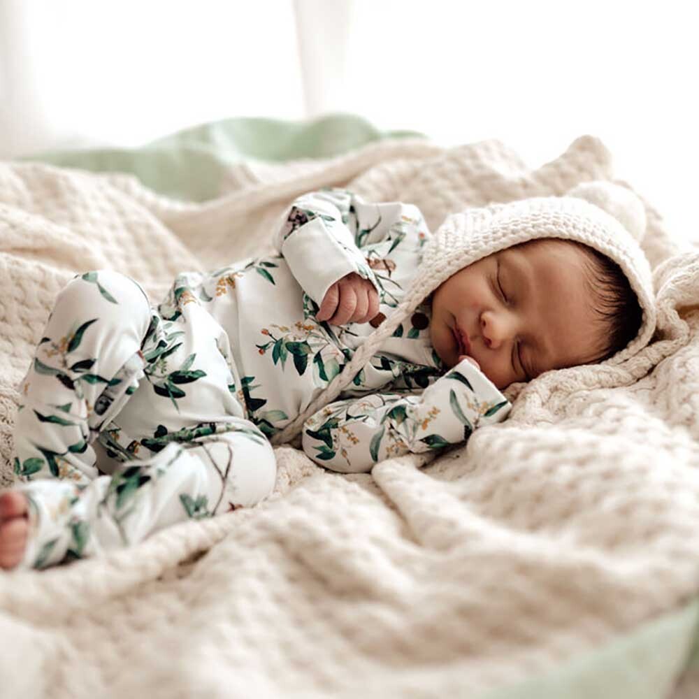 We have also included foldable hand mittens for newborn to 6 months. Hand mittens help stop little nails from scratching and also keep hands warm when the weather is cool. Bub can wear the mittens open or closed. For sizes from 6 months upwards, the mittens are replaced with a stylish cuff. Foot mittens are also an important feature and these are included on all sizes. Who doesn’t love to tuck in those little feet for bedtime to keep warm?