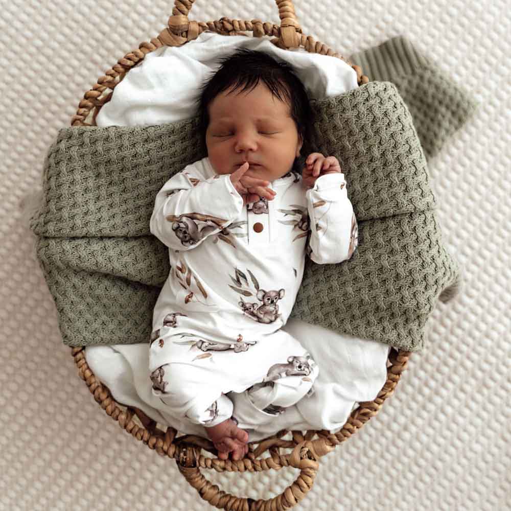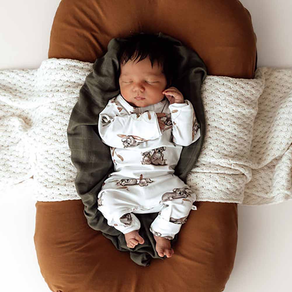 Snuggle Hunny organic growsuits are made for babies and toddlers and our exclusive Koala print celebrates beautiful Australia fauna.