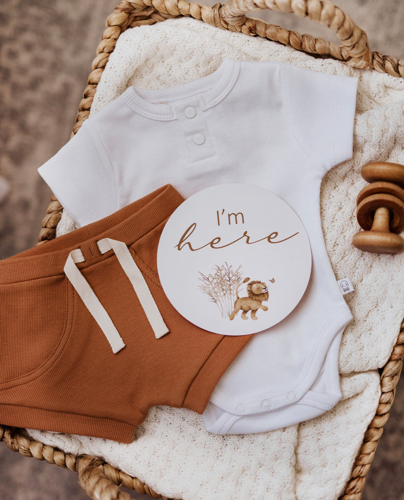 Capture your baby's milestone moments and document their 'firsts' in photographs to treasure for a lifetime with our Lion & Sunrise Gold​​ Milestone Cards.