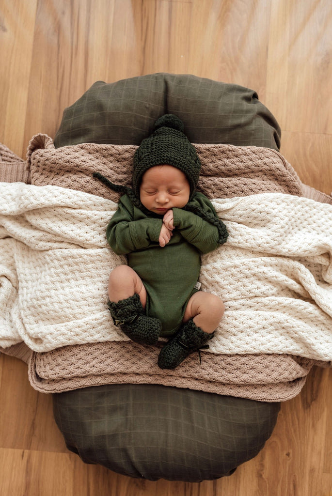 Olive Merino Wool Bonnet & Booties