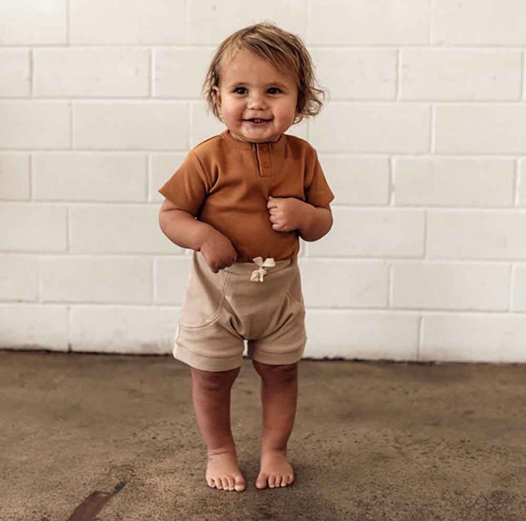 Snuggle Hunny organic Pebble shorts are made for babies and toddlers. They are practical whilst being very stylish. Soft and stretchy, they are an easy care, fuss-free option that’s simple to coordinate thanks to their relaxed style. They are a perfect match with our organic baby short sleeve bodysuits and they will be a go-to short for bub. All our clothing is made with Certified Organic Cotton.