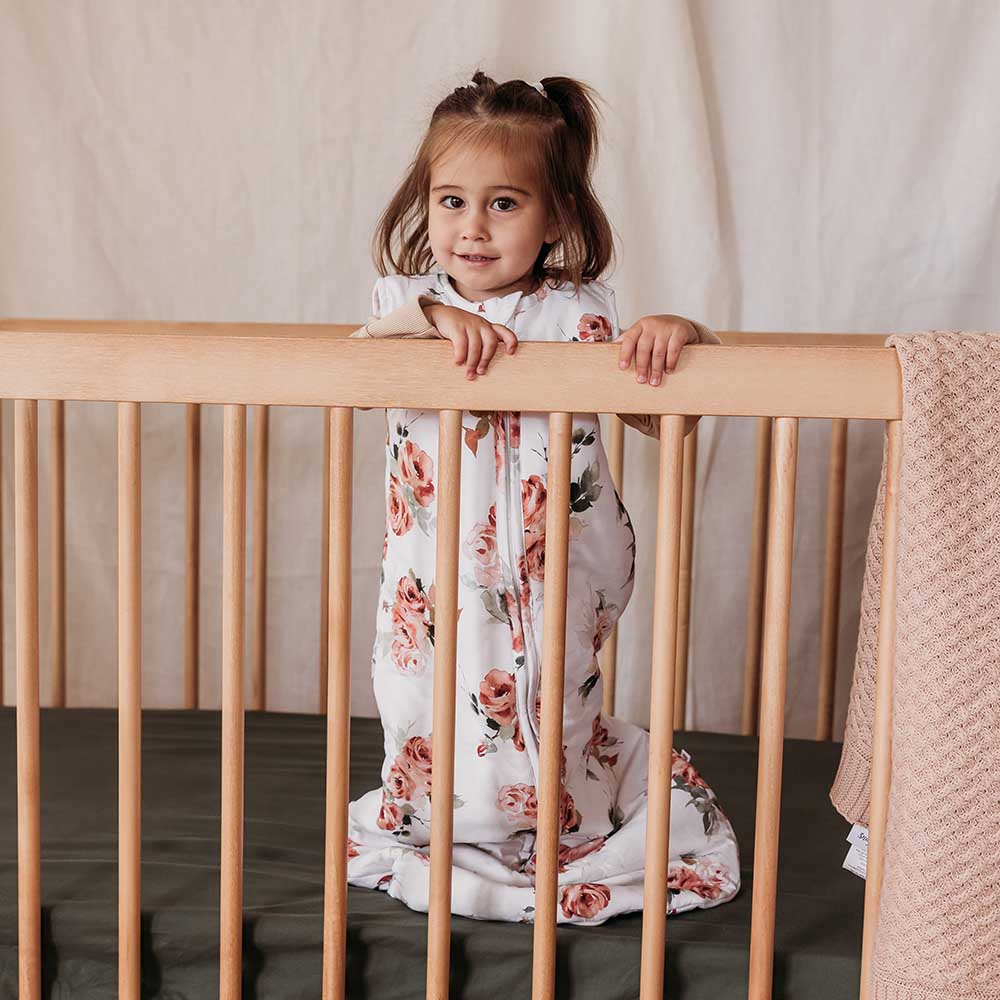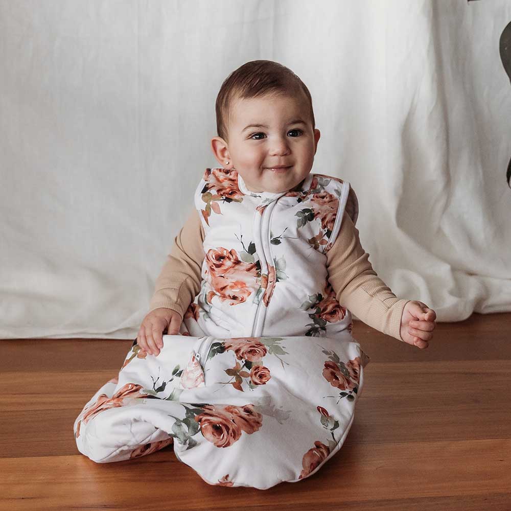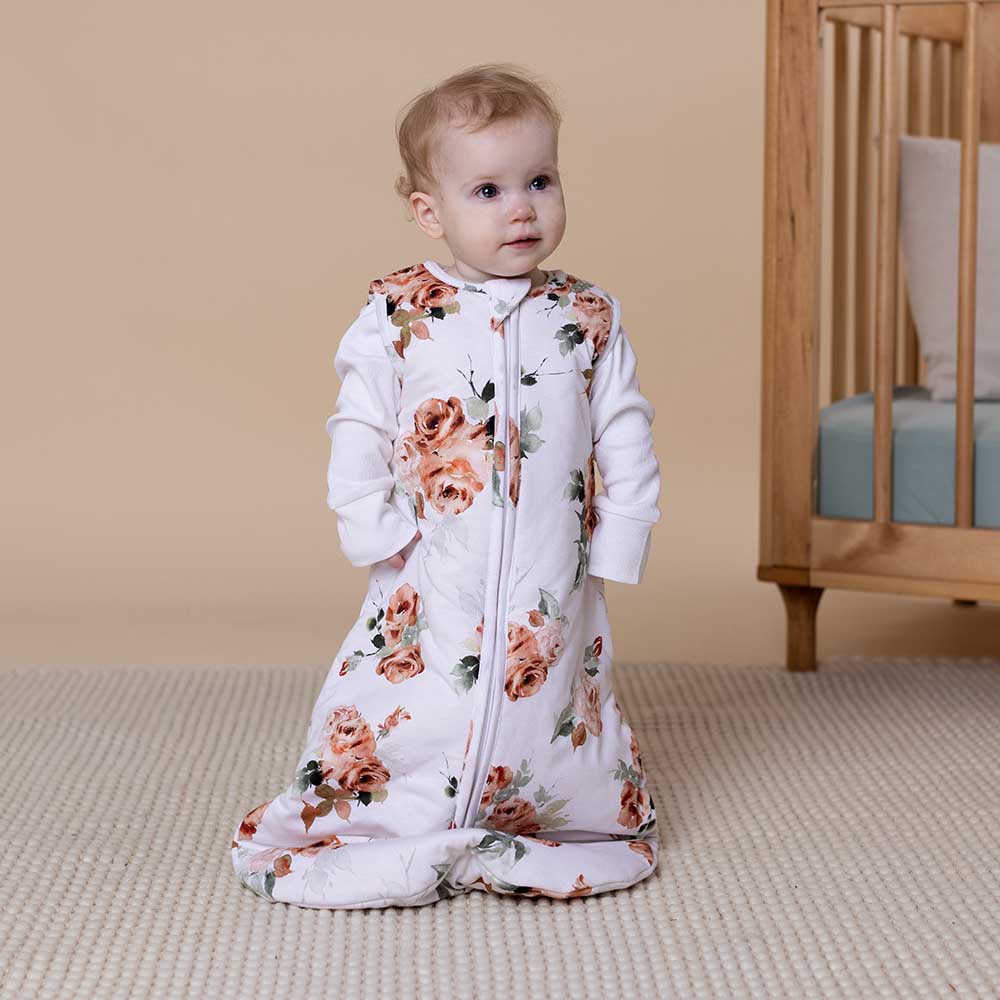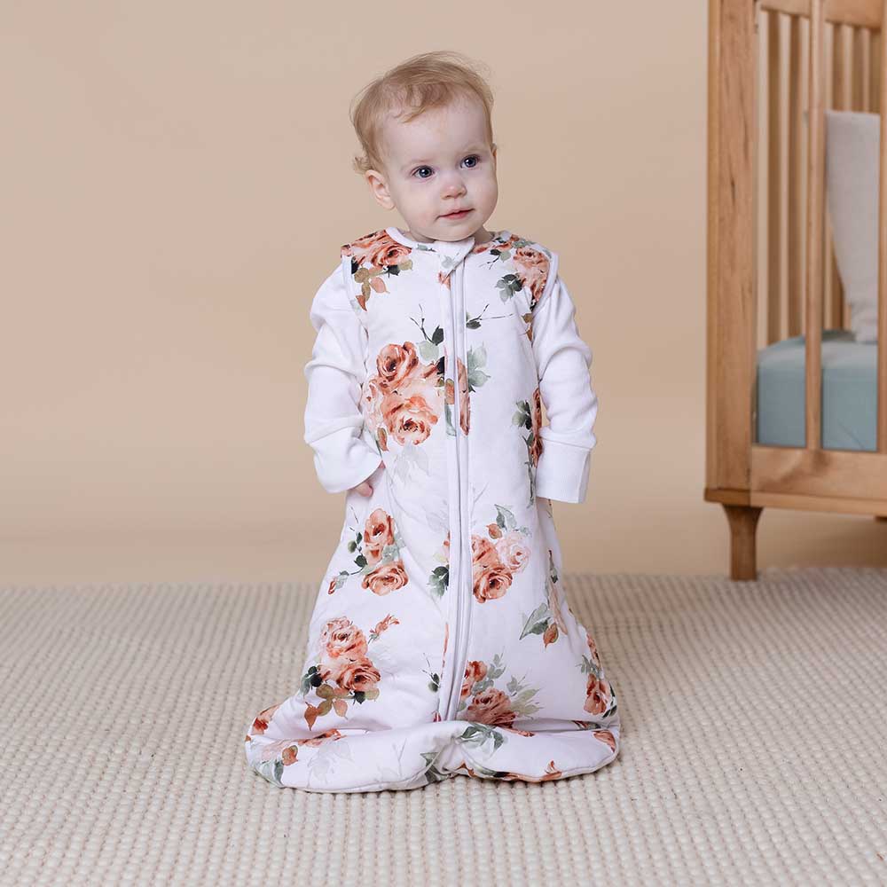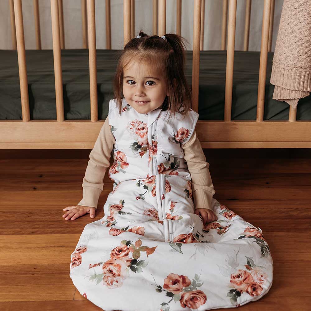 This Rosebud sleeping bag is made from 100% GOTS Certified Organic Cotton and features a long length, two way zipper and bell bottom to promote healthy hip joint development.