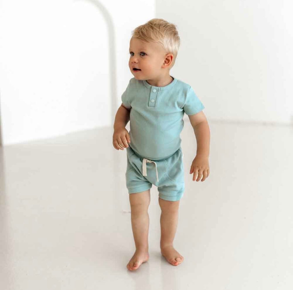 Snuggle Hunny organic sage shorts are made for babies and toddlers. They are practical whilst being very stylish. Soft and stretchy, they are an easy care, fuss-free option that’s simple to coordinate thanks to their relaxed style. They are a perfect match with our organic baby short sleeve bodysuits and they will be a go-to short for bub. Our pants, and all our clothing, is made with Certified Organic Cotton.