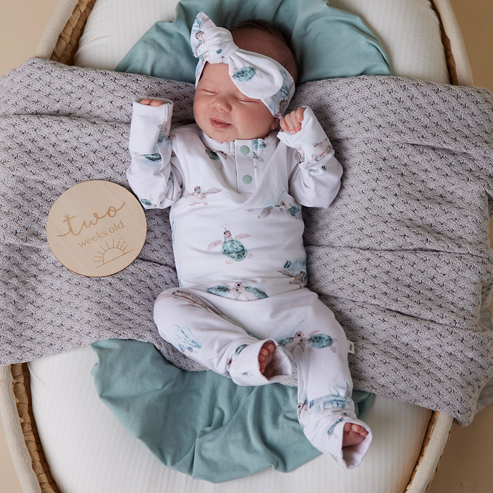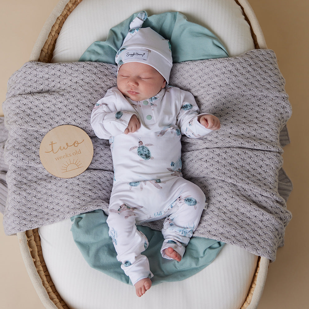 Our Organic Growsuits are an all-in-one onesie that is both functional and beautiful. Soft and stretchy, our growsuits are an easy-care, fuss-free option that’s easy to wear thanks to their modern, fitted style. Suitable for loungewear, daywear, birth announcement photos and make great baby gifts. All Snuggle Hunny clothing is made with GOTS Certified Organic Cotton CU 1182228.