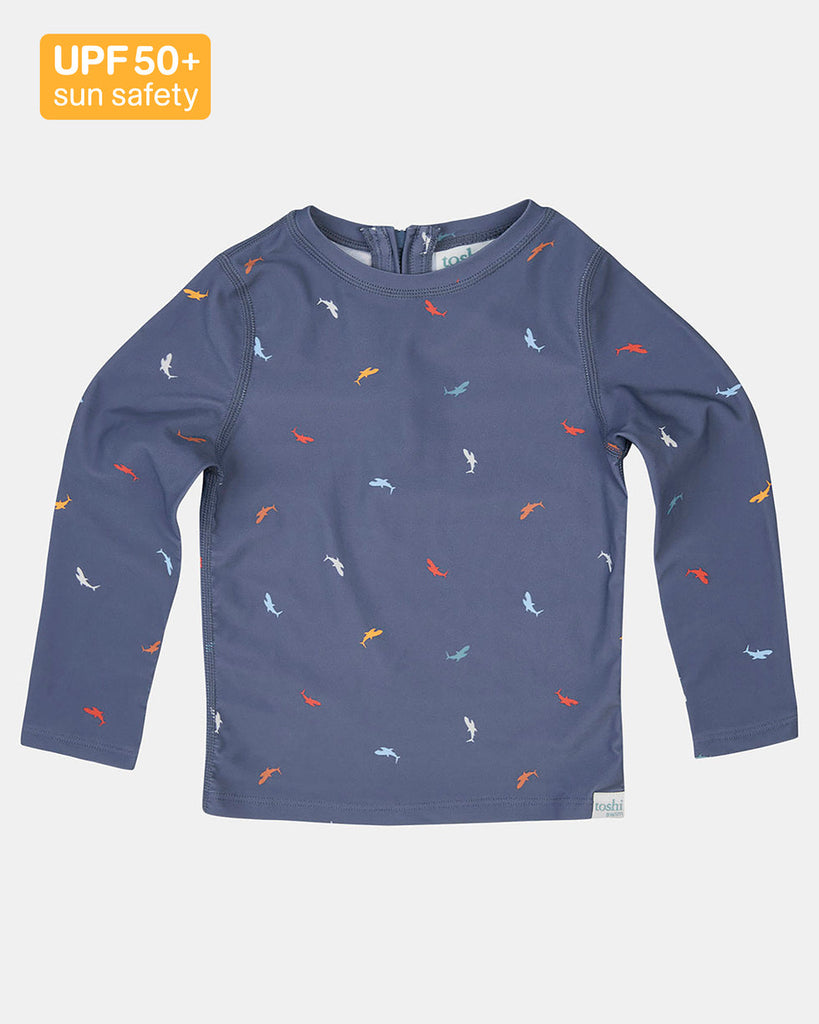 The beauty, functionality and elevated quality for which Toshi is traditionally renowned, is crafted into an exquisite baby swimwear collection. Rated UPF50+, Toshi Swim offers maximised sun protection and water safety. The finest quality fabrication is fast drying and chlorine & salt water friendly. This adorable Toshi seamless swim rashie features back neck zip with extended puller for ease of dressing. A high neckline and long sleeves ensure greater sun protection.