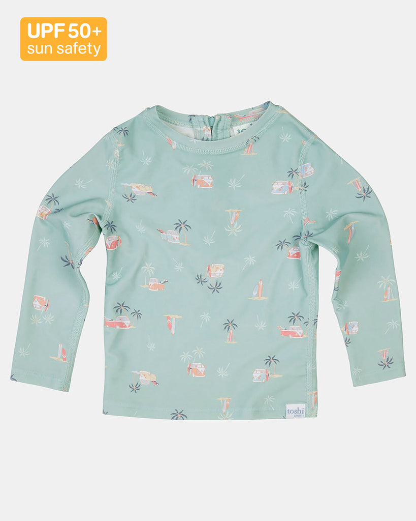 The beauty, functionality and elevated quality for which Toshi is traditionally renowned, is crafted into an exquisite baby swimwear collection. Rated UPF50+, Toshi Swim offers maximised sun protection and water safety. The finest quality fabrication is fast drying and chlorine & salt water friendly. This adorable Toshi seamless swim rashie features back neck zip with extended puller for ease of dressing. A high neckline and long sleeves ensure greater sun protection.